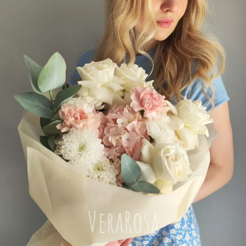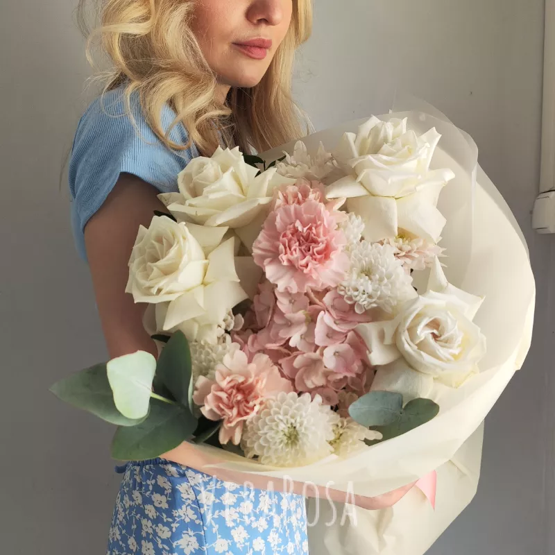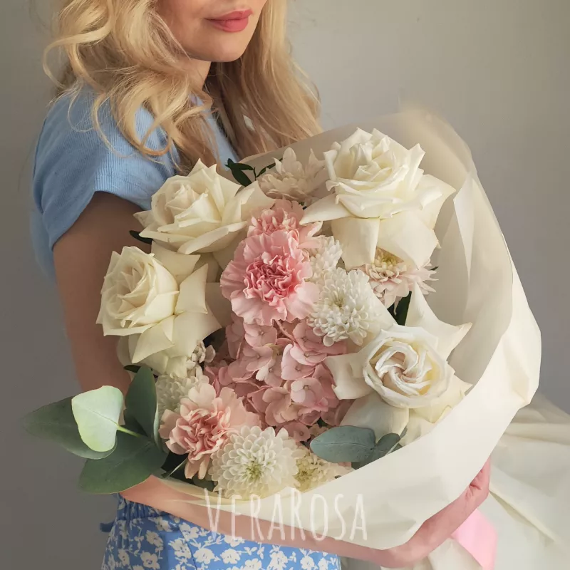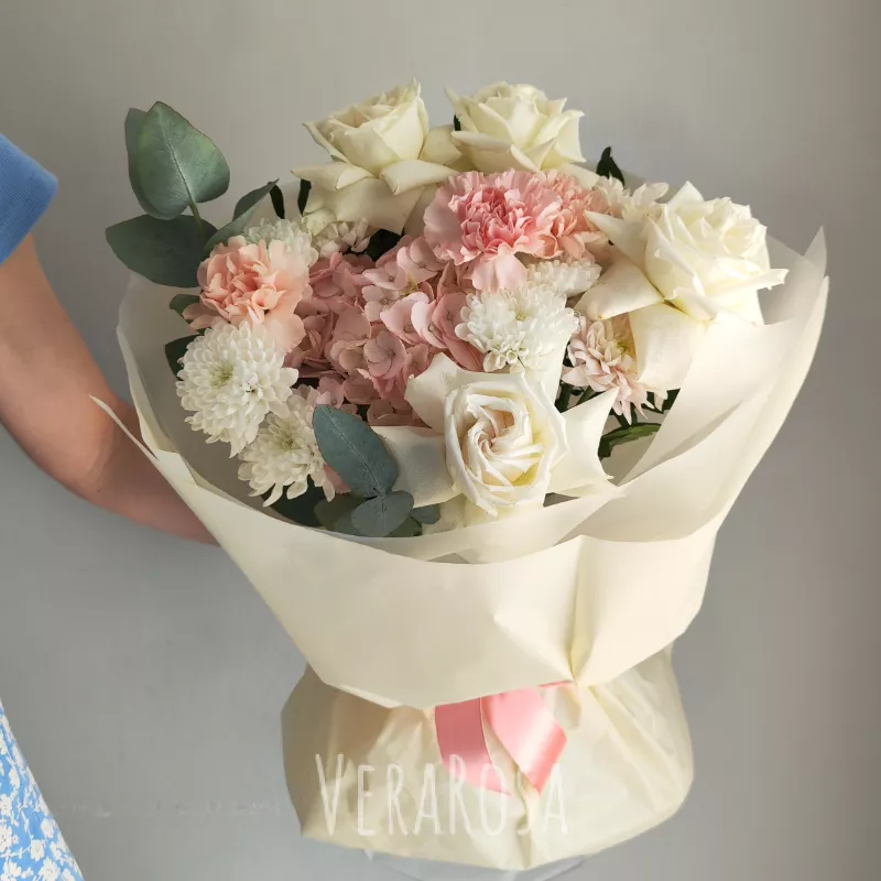 Смотрите также категории: Букет от флориста Букеты с фрезиями От 5000 руб. Композиции из роз Осенняя коллекция Розовые розы Букеты из роз