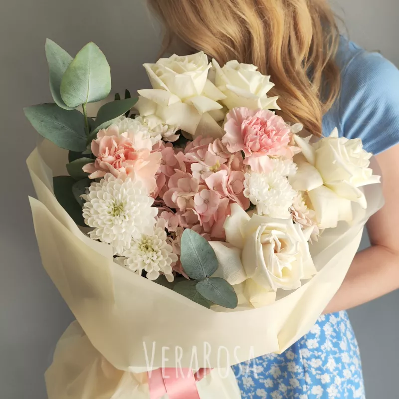 Меня проконсультировали, предложили несколько вариантов сочетания цветов и декорирования. Также удивил факт, что помимо просто сочетаемости флористика обращала внимание на символику растения и цвета.