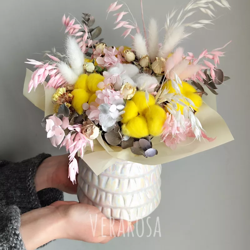 Меня проконсультировали, предложили несколько вариантов сочетания цветов и декорирования. Также удивил факт, что помимо просто сочетаемости флористика обращала внимание на символику растения и цвета.