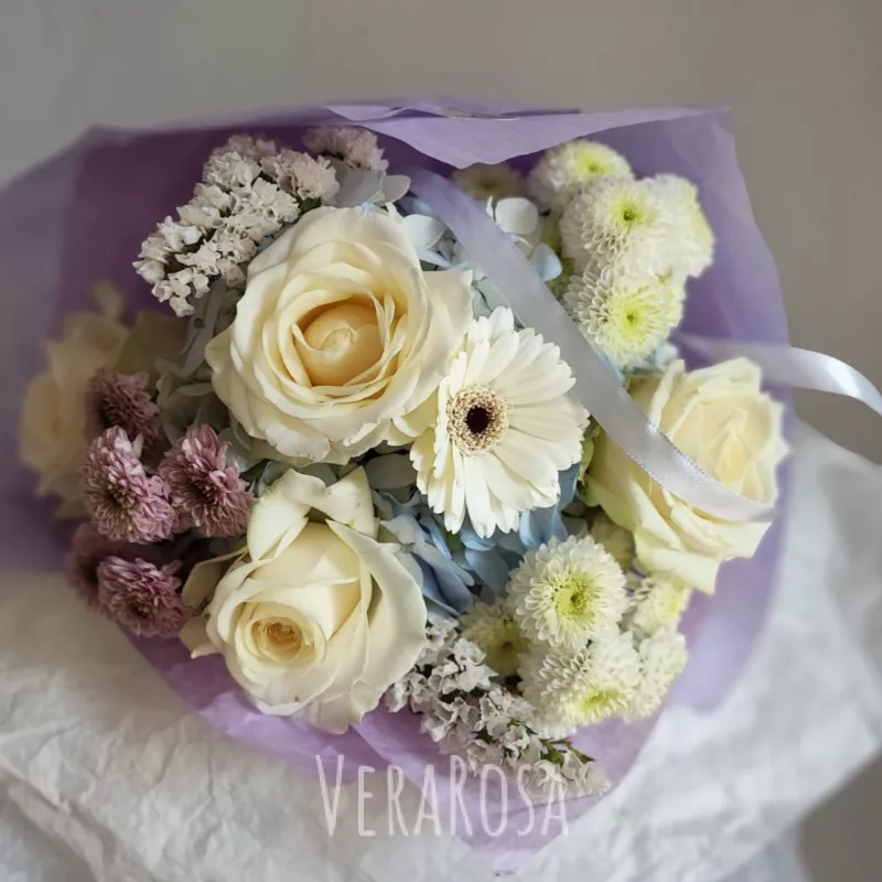 Меня проконсультировали, предложили несколько вариантов сочетания цветов и декорирования. Также удивил факт, что помимо просто сочетаемости флористика обращала внимание на символику растения и цвета.