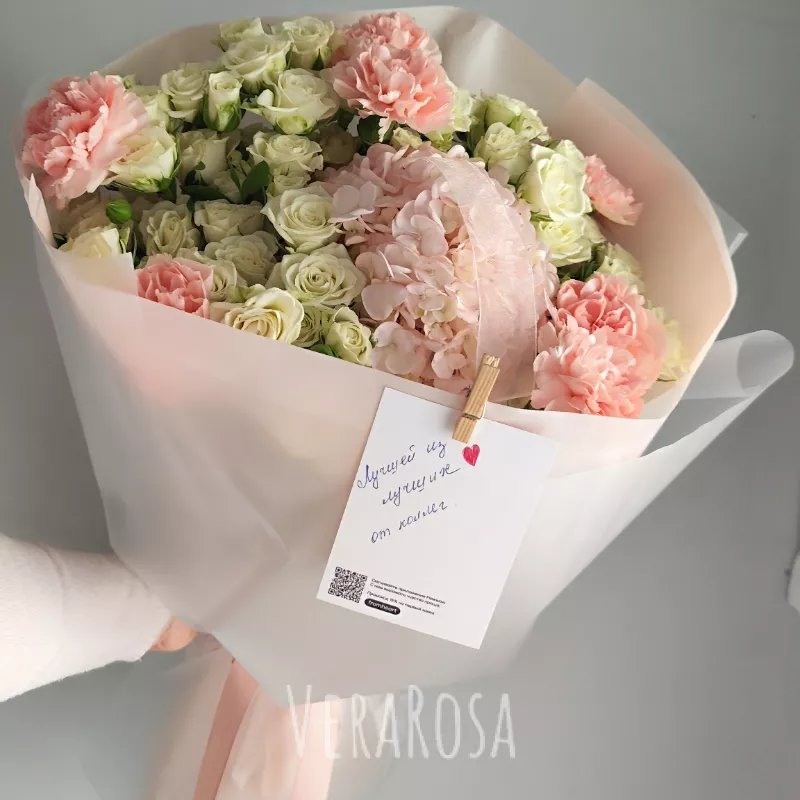 Смотрите также категории: С гортензиями Букеты из роз Пионовидные розы Премиум букеты Букеты с фрезиями Композиции с орхидеями Красные розы