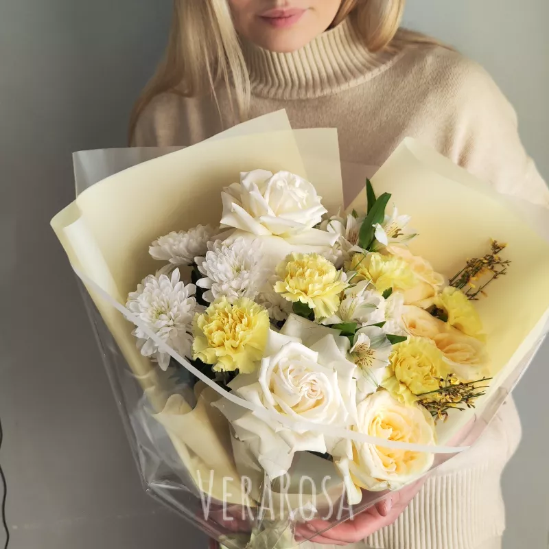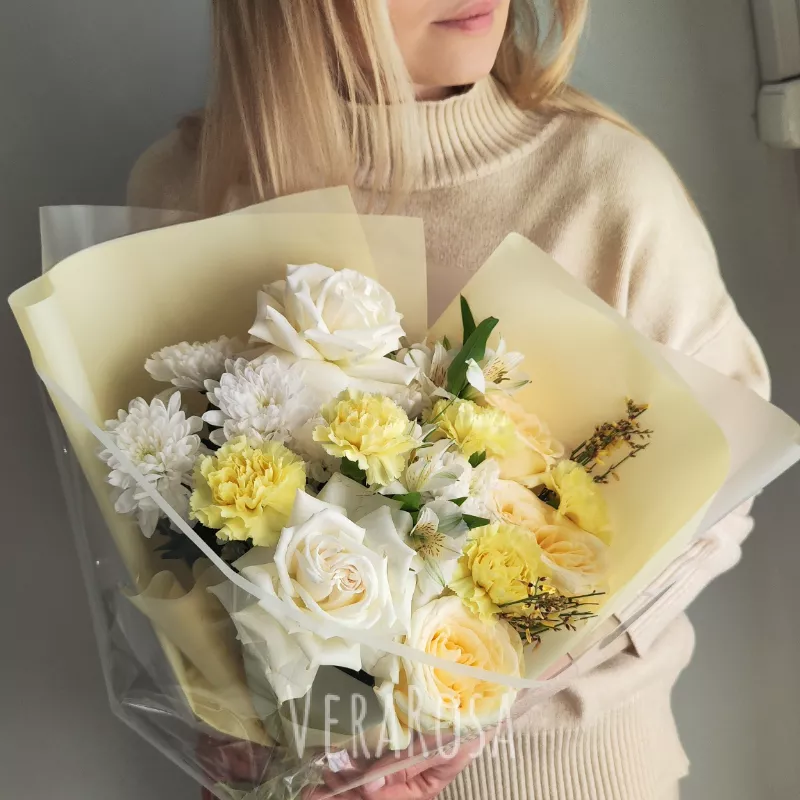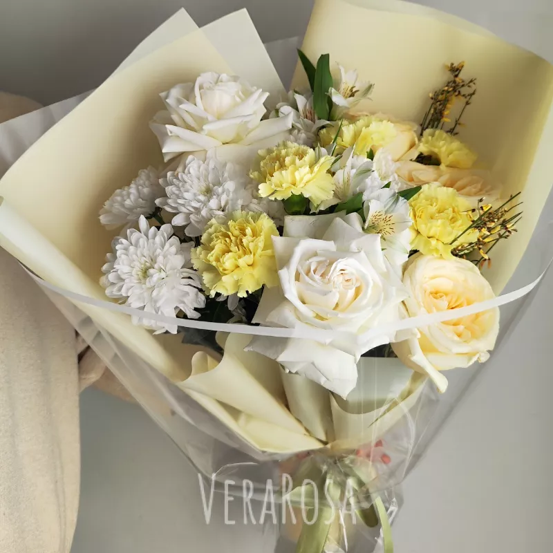Меня проконсультировали, предложили несколько вариантов сочетания цветов и декорирования. Также удивил факт, что помимо просто сочетаемости флористика обращала внимание на символику растения и цвета.