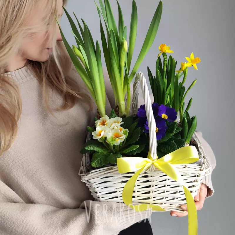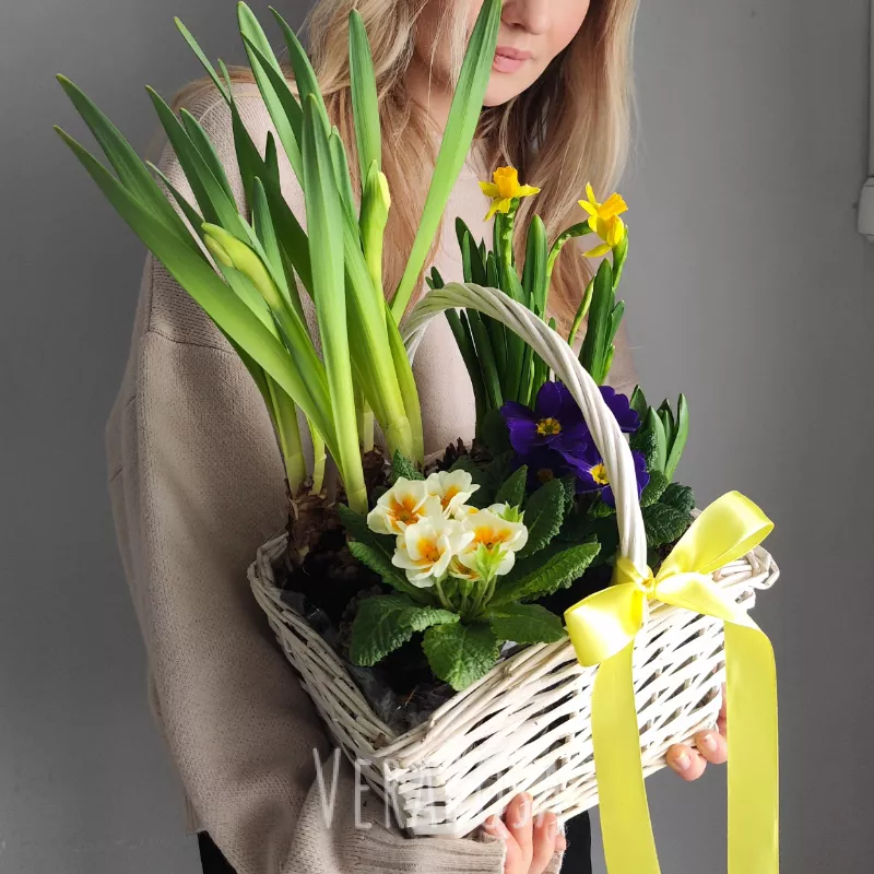 Первоцветы в корзине Ранняя пташка